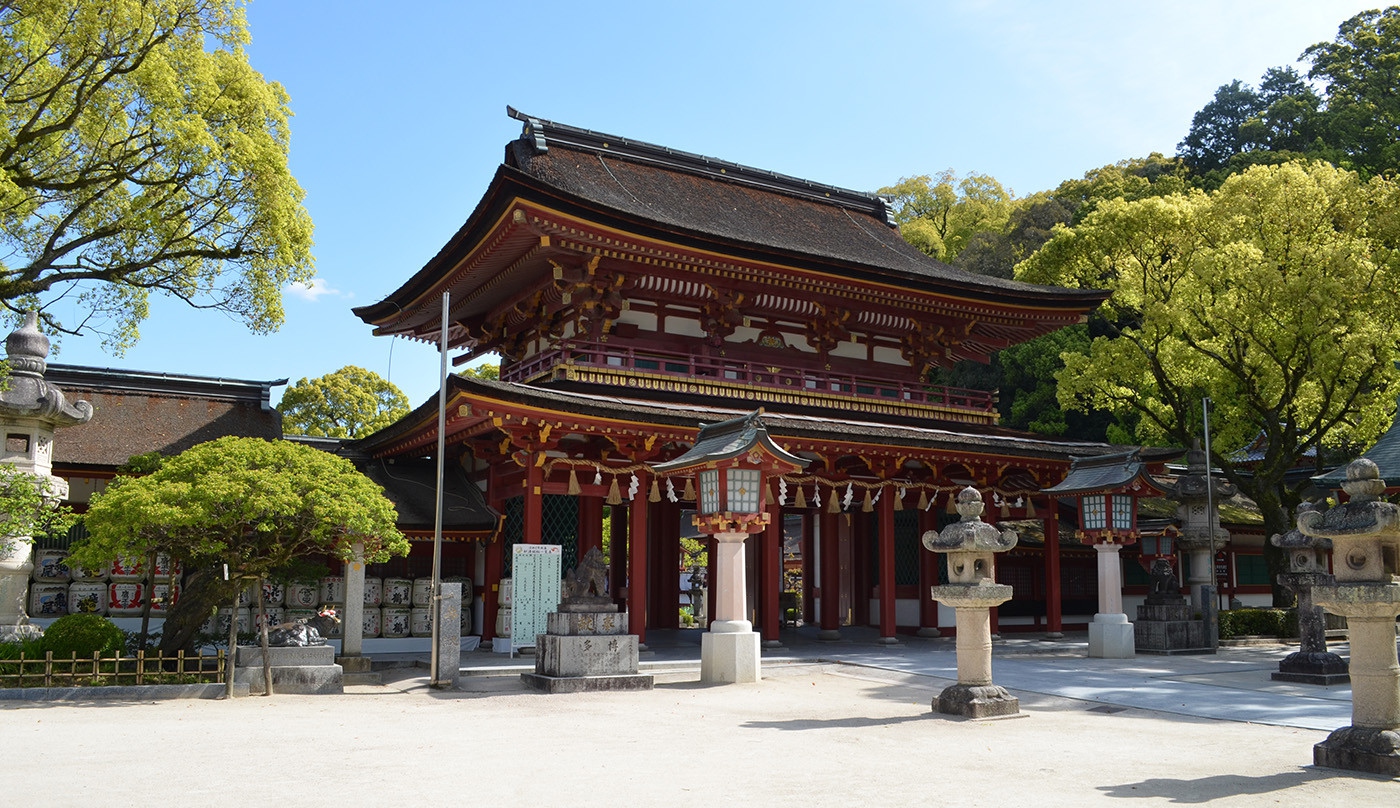 This site features a mausoleum for Sugawara no Michizane, who died in Dazaifu while serving as Provisional Governor of Dazaifu. It was also called Tenmangu Anraku-ji Temple. In the Heian period (794-1185), various events, including Kyokusui no En, that originated from the continent were held here, and some are still conducted today. Michizane was revered as a man of culture, and so many nobles and samurais visited the shrine. It became a sacred spot for literature, and linked verses have been dedicated to the shrine. A copy of a book published during the Tang Dynasty called “Kan-en”was transcribed during the Heian period, and is preserved here. (This is considered a national treasure.)During the Kamakura period (13 century), Koyu, an envoy from Goryeo, visited the shrine and dedicated a poem to it. The Main Shrine is designated as a nationally important cultural property. The shrine, in combination with the traditional events practiced here, allowvisitors to experience the atmosphere of an ancient era.