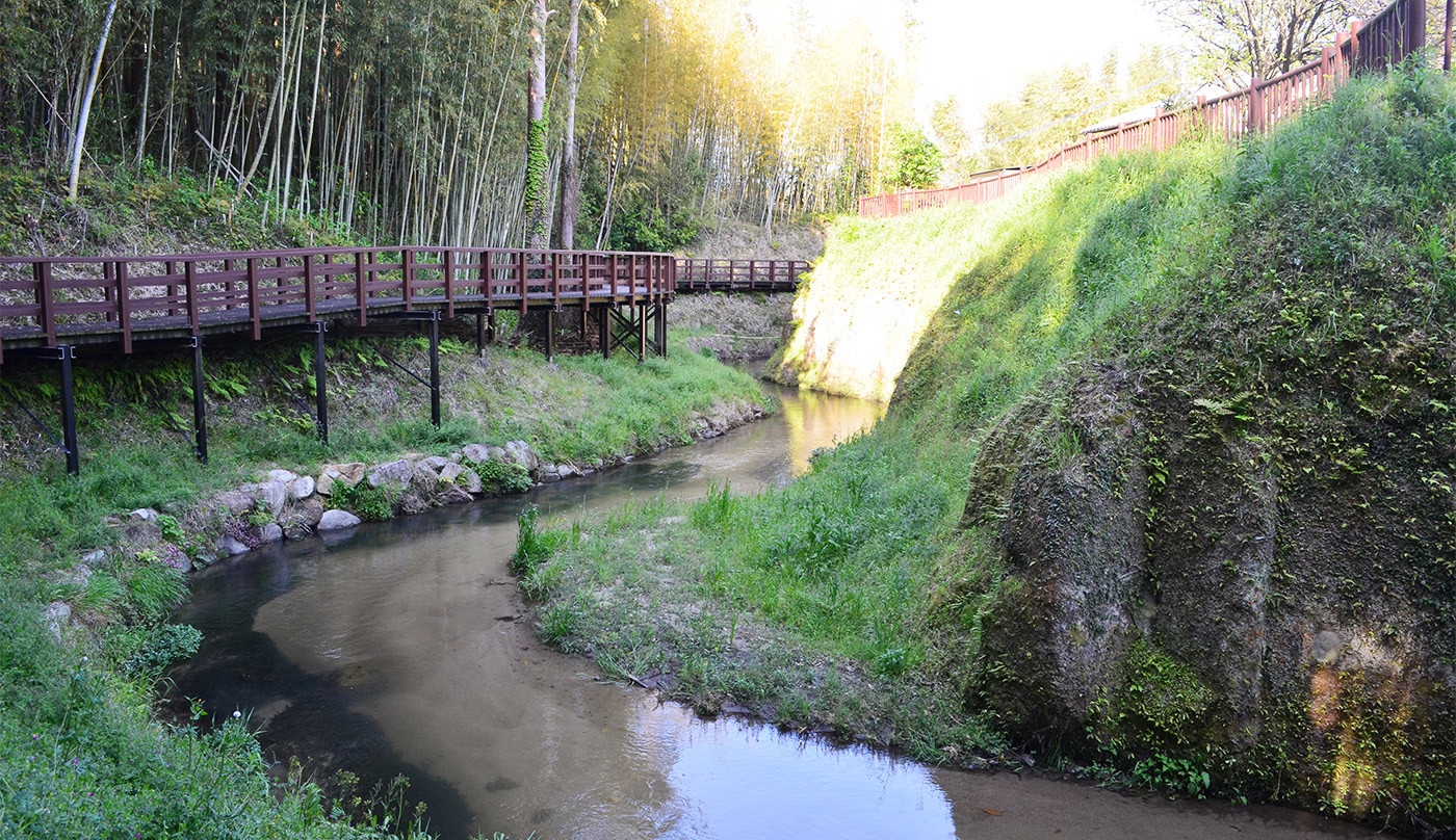 Promenades and parks have been established along Sakuta no Unade waterway, where many people come to jog, run, or stroll around while taking in the ancient atmosphere. The waterway dances with fireflies in summer, and if you are lucky you may even see kingfishers. The newly established Sakuta no Unade Park serves as your starting point for a walk around the cultural properties surrounding the waterway. There are some places where you can dip your feet in the water, which feels wonderful on a hot summer day.