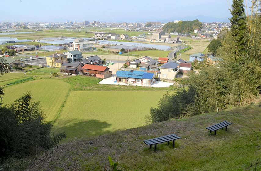 This lookout point, offering sprawling views of the rice paddies irrigated by Sakuta no Unade Waterway, was built a few years prior by local residents and volunteers. Here, you can reflect on how this area once served as a granary that supported the development of the “Western Capital”.