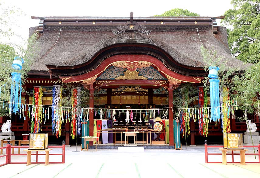 七夕の宴は、7月の七夕の行事です。境内は、色とりどりの短冊や飾り物を下げた笹がならび、夏の訪れを告げます。