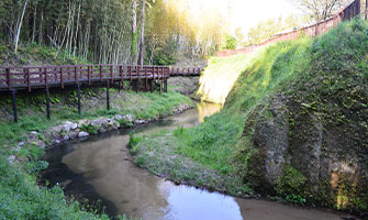 나카가와에서 취수하여 대지의 자락을 완만하게 흐르는 인공 용수로인 사쿠타노우나데. 720년에 성립한 ‘일본서기’ 진구황후기에 등장하며 그 역사는 오래되었습니다. 대지를 관통하는 개천의 총 길이는 약 5.5km이며 ‘서쪽의 수도’가 성립하자 풍부한 곡창 지대는 그 발전을 지속했습니다. 지금도 유유히 흐르는 수변 풍경은 당시의 모습을 담고 있습니다.