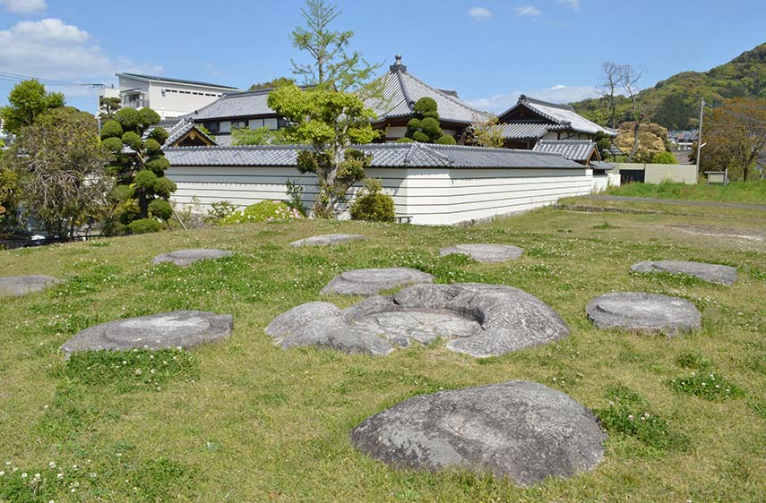 在奈良时代初期建造的古代寺院中,发现了础石建筑的遗址。在此历史古迹中发现,大宰府政厅和政府周围铺设相同的屋檐圆屋瓦和屋檐平瓦,由此得知,不仅是在西都,甚至近郊地区的建筑物,也都以先进的砖瓦工艺而建。