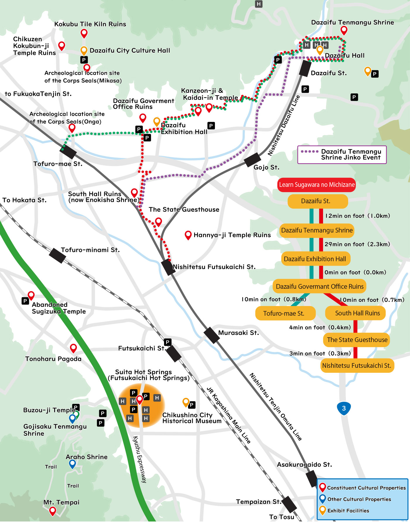 Dazaifu Tenmangu is a shrine to Sugawara no Michizane. The tale of Michizane’s life ended with quiet contemplation in Dazaifu, followed by posthumous reverence as the God of Learning. Venture through the narrow streets of Dazaifu to uncover the yet undiscovered true face of Michizane.