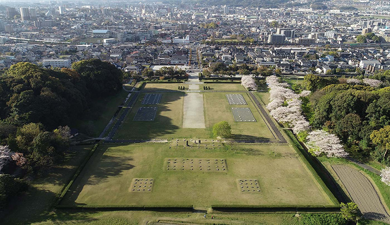 古代の大宰府のなかで、中心的な役所の跡です。大宰府の長官が仕事をした政庁や、朱雀大路のそばにつくられた外国使節をもてなす迎賓館などがあります。