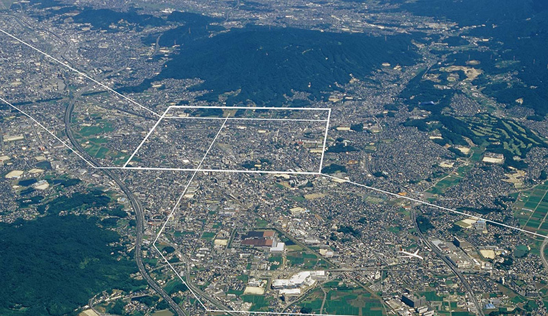 唐の都である長安や、奈良の平城京をまねて、碁盤目のような街の区画(条坊)がつくられました。今もまちを歩くと、当時の区画の一部が残っています。