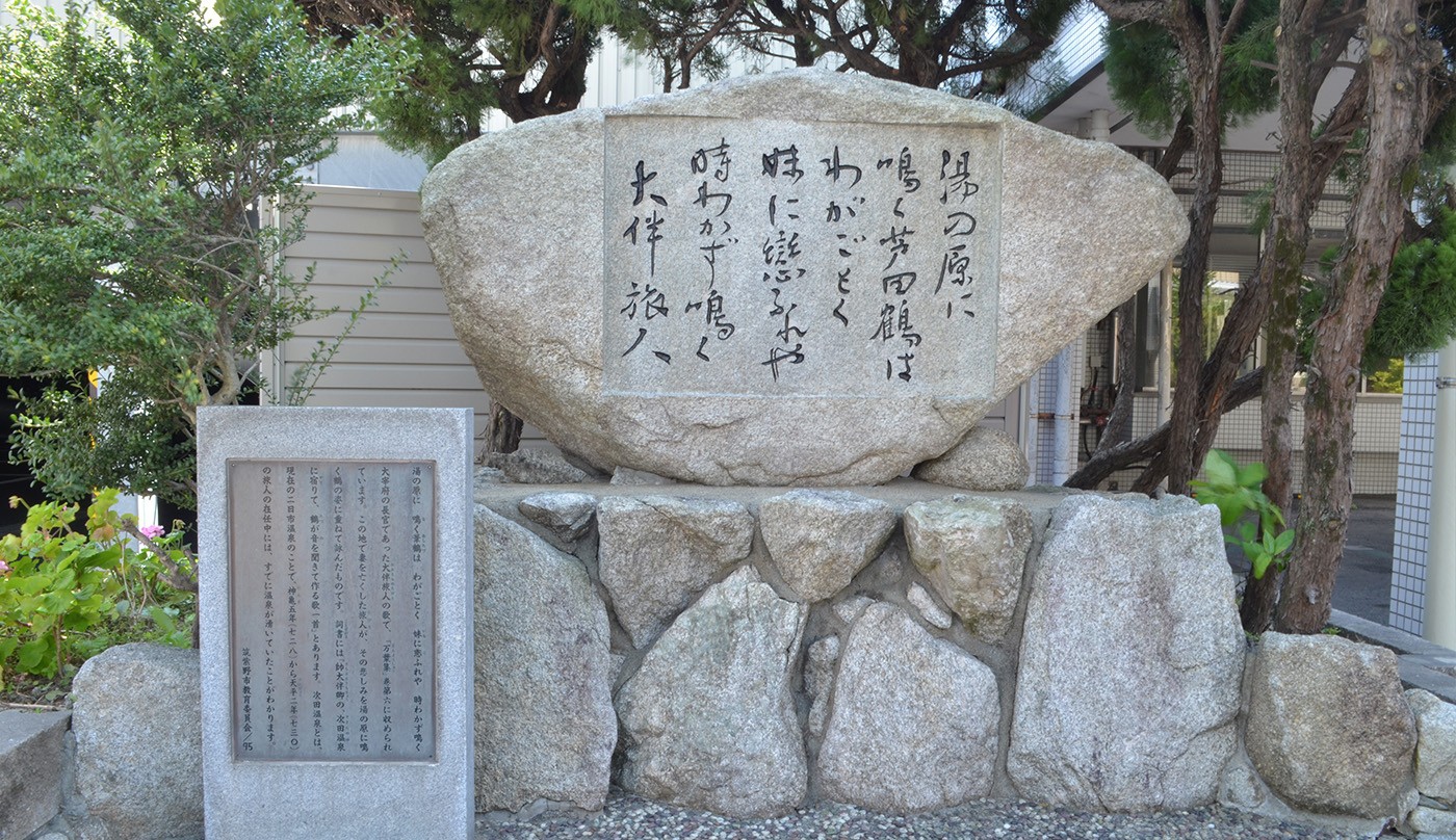 사적이 펼쳐진 지쿠시 가단의 만요슈 가인들이 본 풍경이 남아 있는 다자이후 시내에는 현재 29개의 만요 가비가 세워져 있습니다. 안내 책자와 일본유산 앱을 보면서 돌아보는 것도 추천합니다.