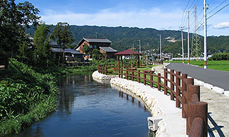 나카가와에서 취수하여 대지의 자락을 완만하게 흐르는 인공 용수로인 사쿠타노우나데. 720년에 성립한 ‘일본서기’ 진구황후기에 등장하며 그 역사는 오래되었습니다. 대지를 관통하는 개천의 총 길이는 약 5.5km이며 ‘서쪽의 수도’가 성립하자 풍부한 곡창 지대는 그 발전을 지속했습니다. 지금도 유유히 흐르는 수변 풍경은 당시의 모습을 담고 있습니다.