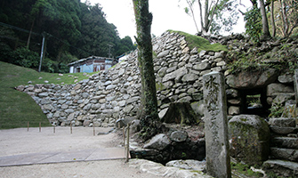 大野城と同じ 665 年に築かれた基肄城も谷を遮る石塁が壮観。