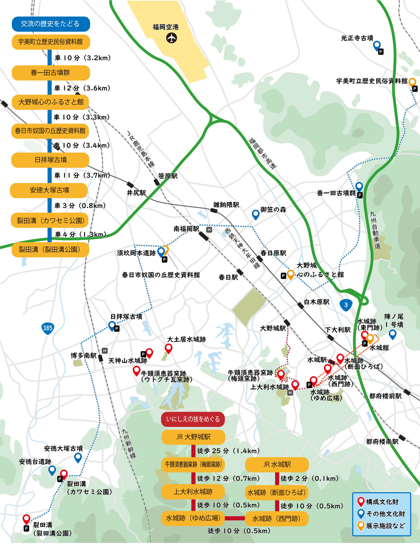 福岡平野とその周辺地域は、海路で朝鮮半島や中国大陸につながり、古くから東アジアとの交流の歴史を重ね、国際色豊かな文化を育んできました。遥か昔に始まる国際交流の足跡を辿れば、国際都市「西の都」の原点を実感できます。