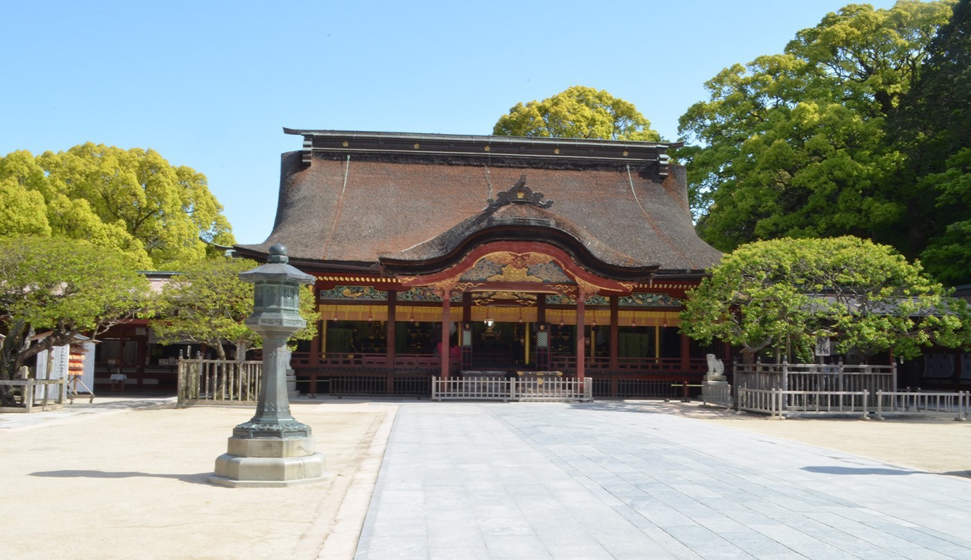 以大宰权帅身份死于大宰府任上的菅原道真的庙宇为中心。该庙宇也被称作天满宫安乐寺。从平安时代开始,以源自大陆的“曲水宴”宴等为代表的一些仪式一直流传至今。道真也作为文人而备受尊敬,很多贵族与武士都来拜庙。这里成为文艺的圣地,“连歌”等源源不断的被进献上来。另外,这里还留存有唐代书籍《翰苑》在平安时代(794—1185年)的影印本(国宝)。在镰仓时代(13世纪),高丽国使者高柔来参拜,进献诗歌。现在,该殿已经被指定为国家重要文化遗产,与辖区内的其他传统仪式一起让人感受到古代的气氛。