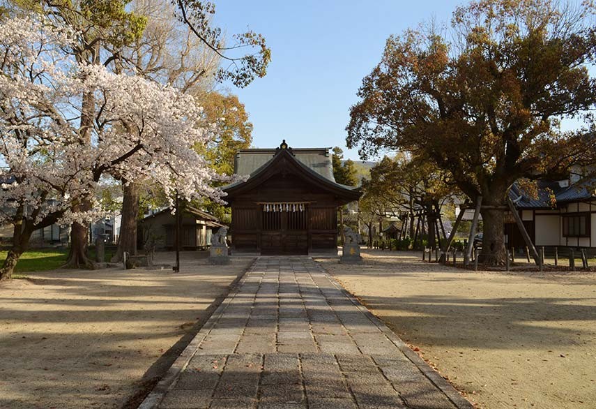 菅原道真于西元901年,从京都贬至大宰府,在「西都」度过了大约2年的时间,并于西元903年去世。在这段时间里,作为道真住所的官邸,在汉诗集『菅家后集』中,曾以「南馆」记载,位于朱雀大路西侧的右方,但十分荒凉,道真将其咏颂为「空蘯蘯的官邸」。道真死后约100年,到了西元1023年,大宰大贰的藤原惟宪,为了悼念道真的精神,而建造了净妙院,后来被称为榎寺,现在,榎社的境内腹地广阔。另外,境内东侧的南北道路,是当时朱雀大路的痕迹。不妨站在这个安静的神殿里,遥想在文学艺术方面表现出色的道真晚年情景。