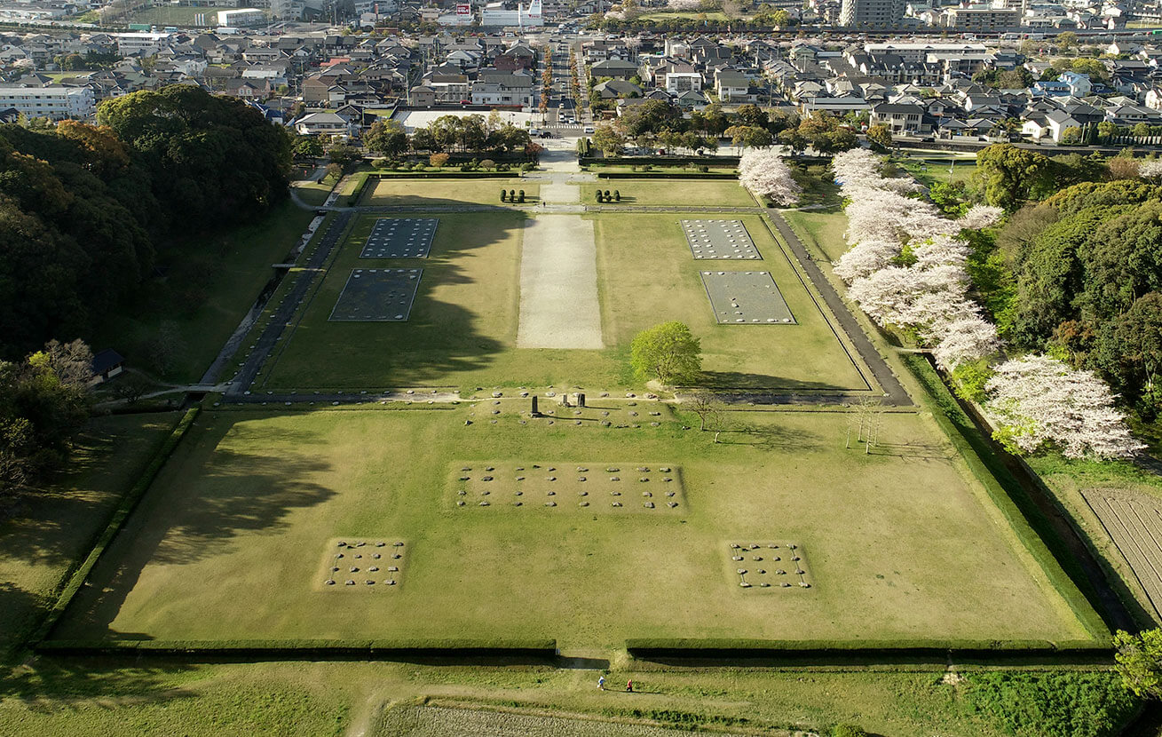 即使到了今天,大宰府的遺跡和其周圍的景觀,仍然保留著當時的情景,宗教設施、迎賓設施、筆直的道路和棋盤狀的土地劃分痕跡,成為在現代還是能夠體驗這個1300年前古代國際城市「西都」的地方。
