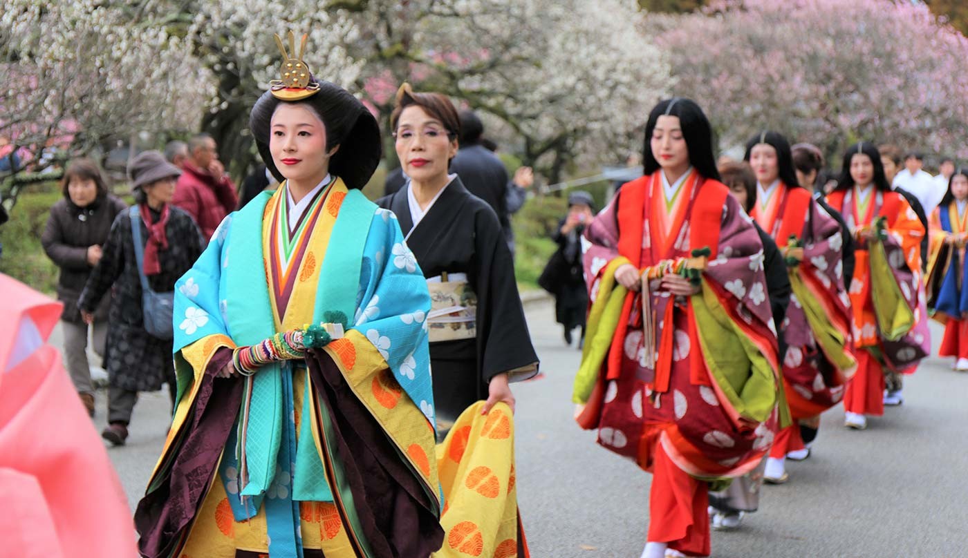 曲水宴是在3月的第1個週日所舉行的活動。人們穿著衣冠束帶和十二單等,平安時代的正式服裝,坐在曲水的岸邊吟詠和歌,成為春天的風情畫。